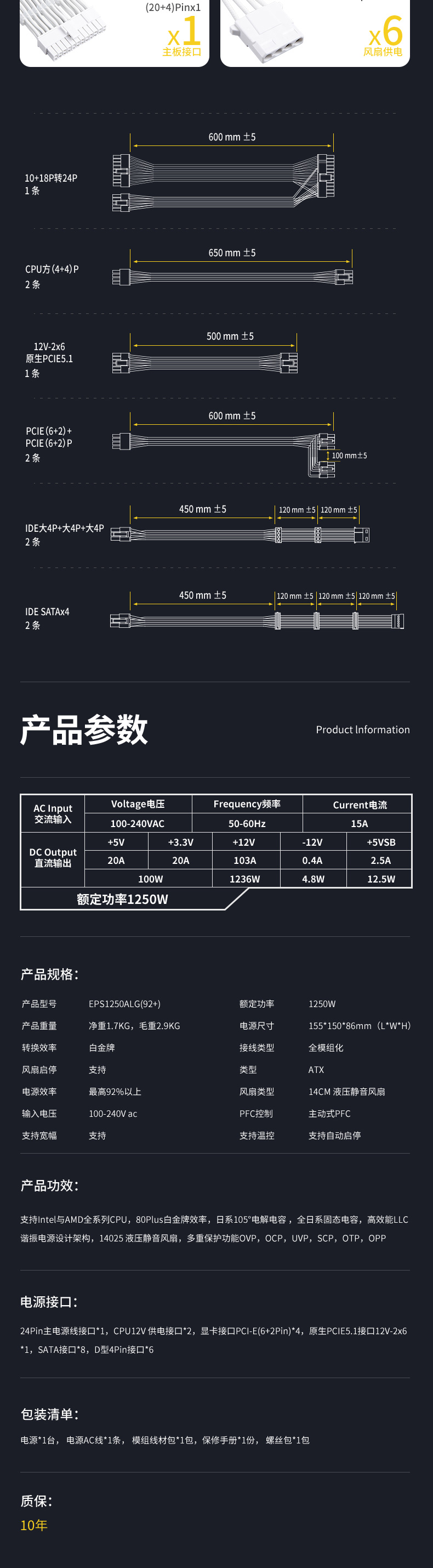 » 白金牌A+1250W(全白版)